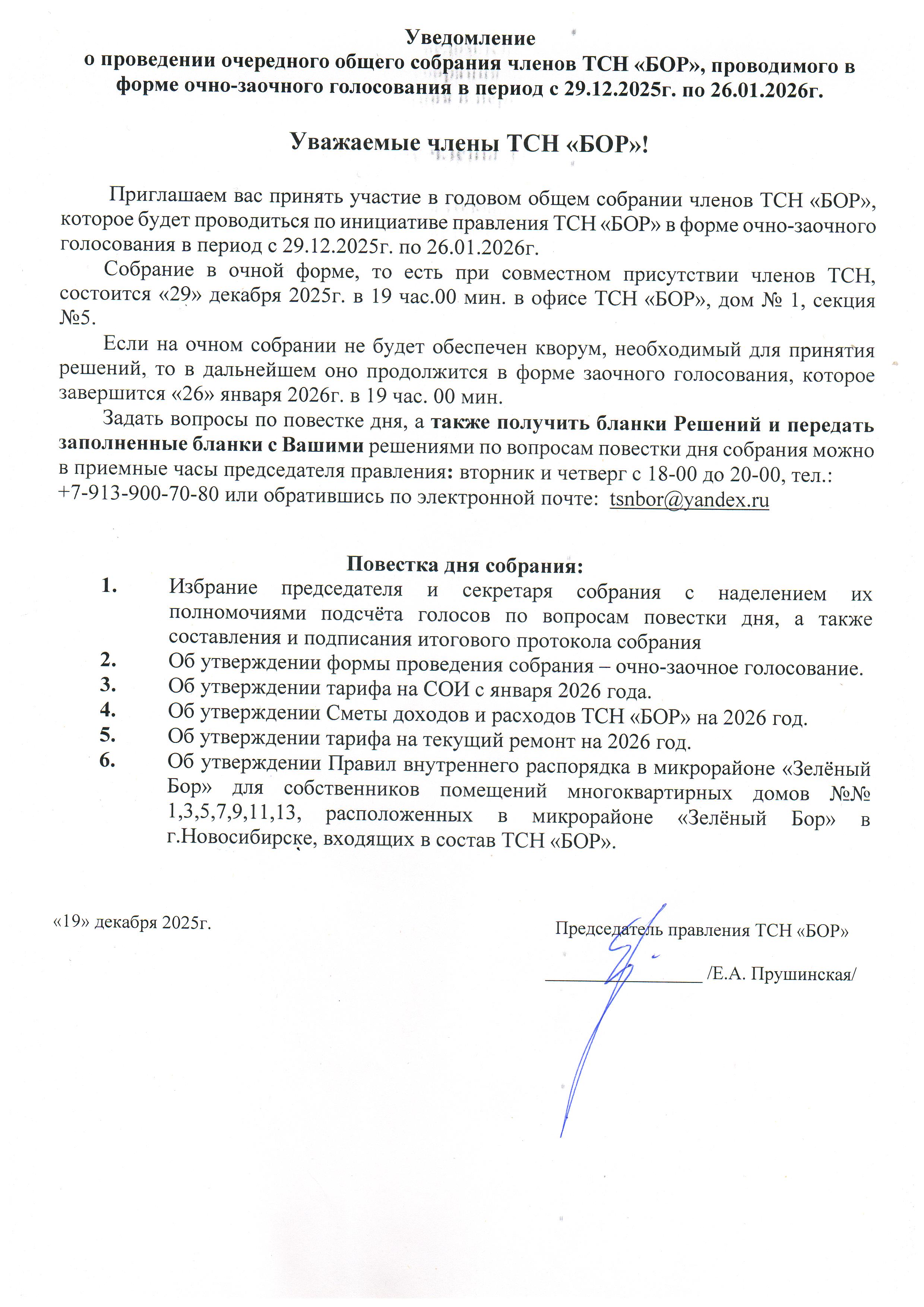 Уведомление о проведении общего собрания членов ТСН по тарифу на 2026 год20.12.2025